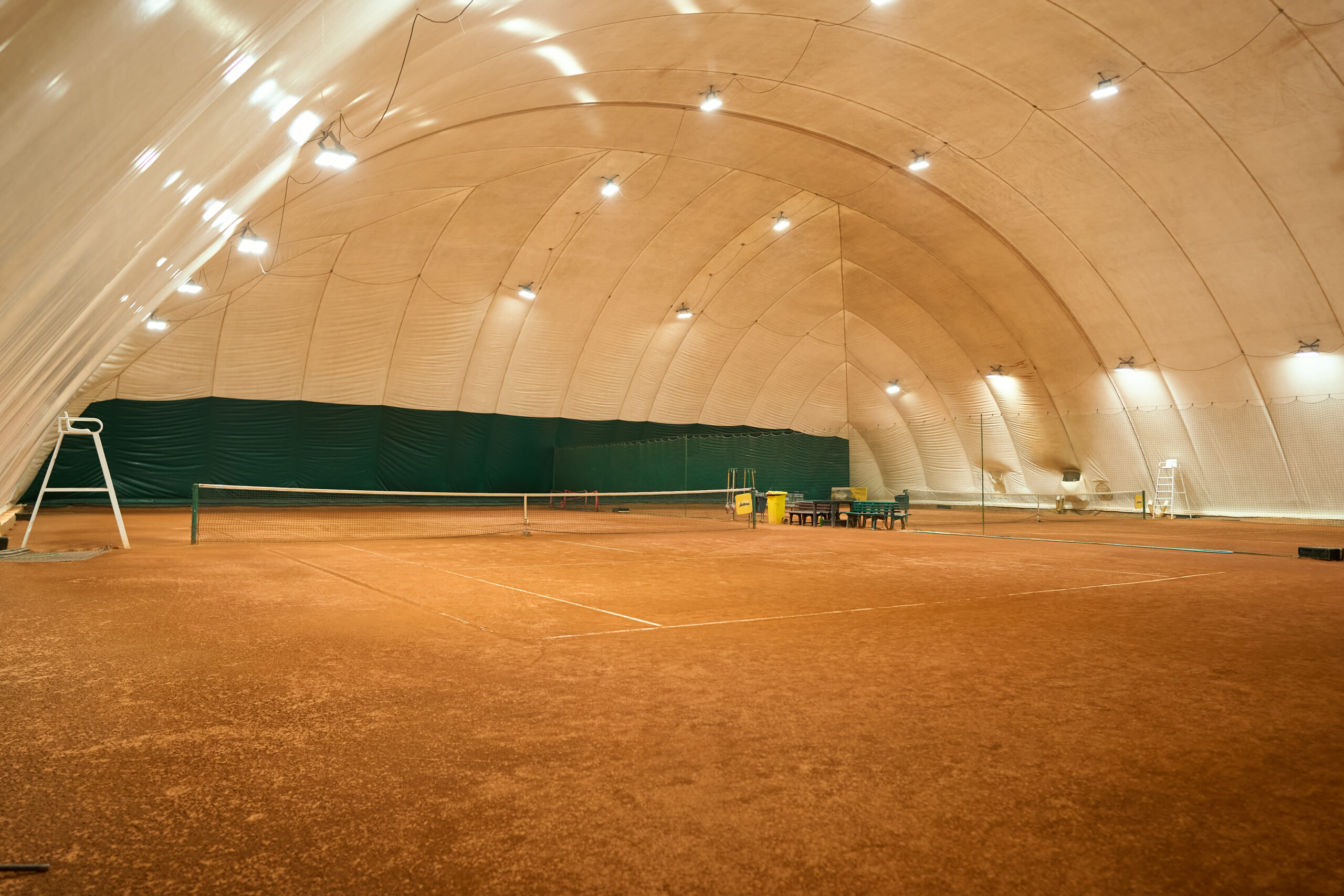 В клубе есть современные крытые и открытые корты с качественным покрытием, подходящие для тренировок и соревнований.